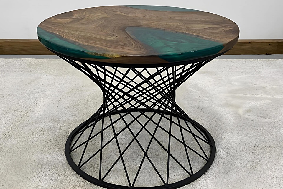 Belkıs Epoksi Yuvarlak Ceviz Sehpa - Antalya Manavgat